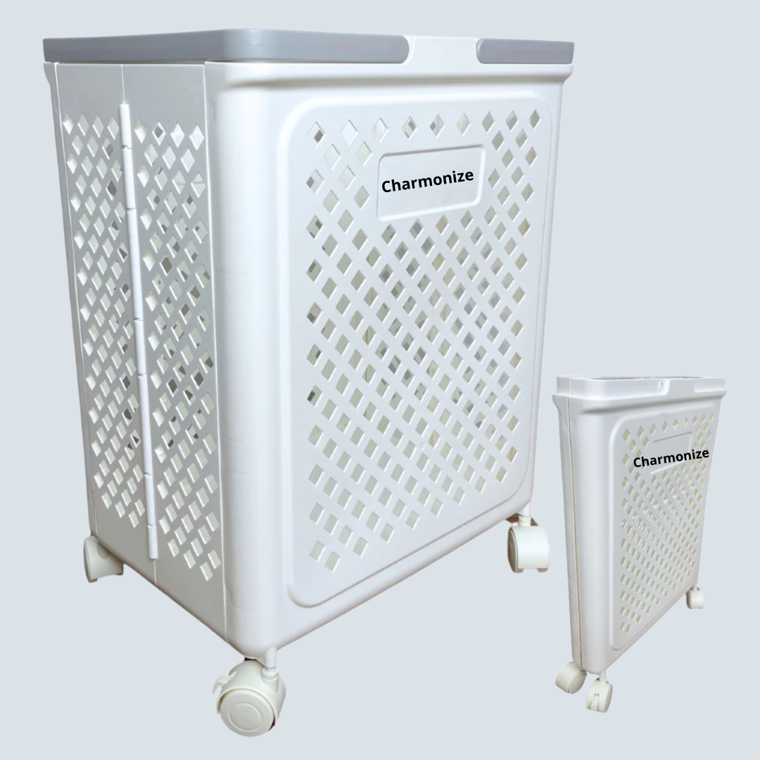 ✔ 1 Cesto de Roupa com Rodinhas e Alça Dobrável Luxo